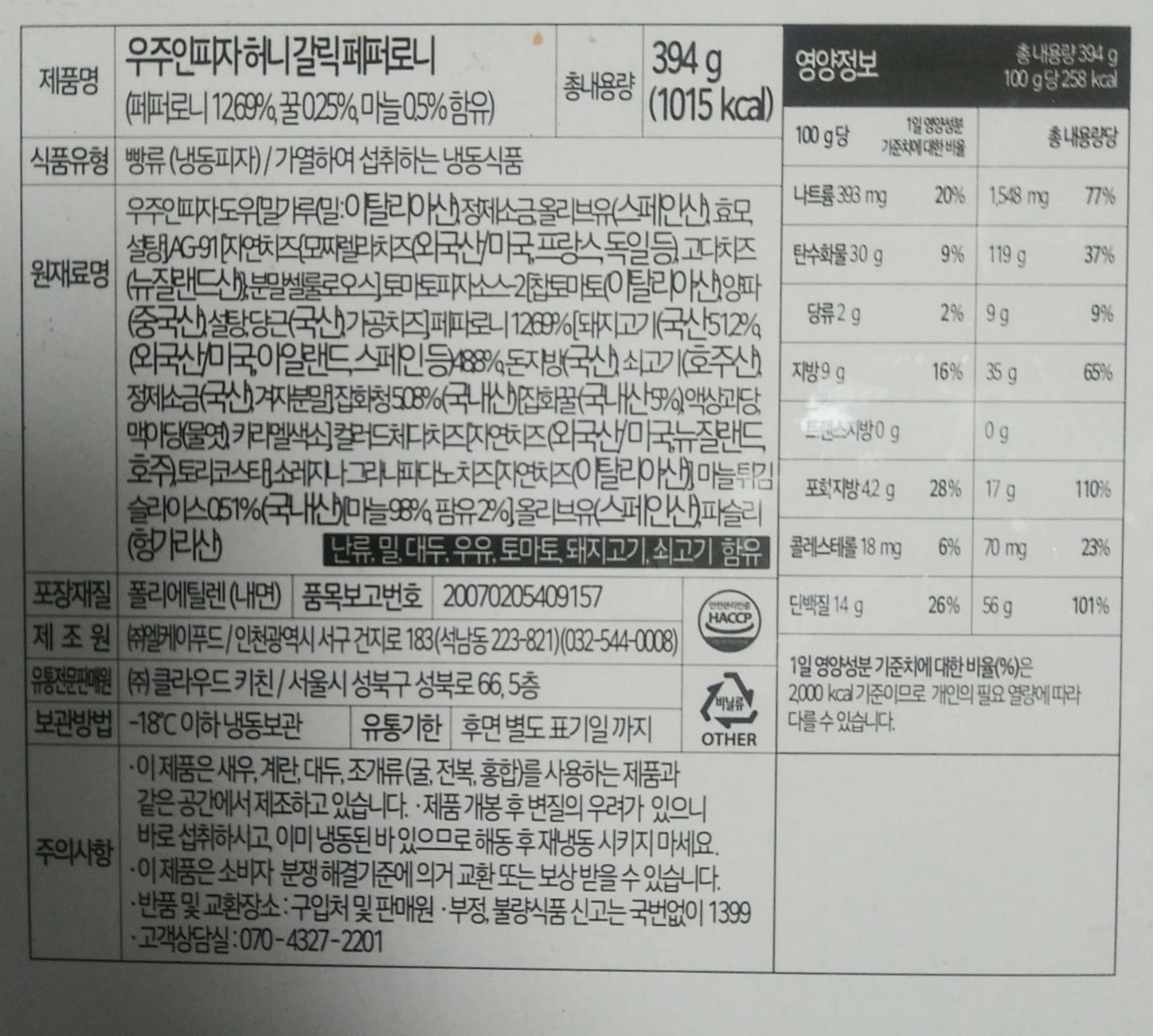 'ㅋ'사에서 구매한 우주인 피자라고 합니다. 페퍼로니 피자고요.
