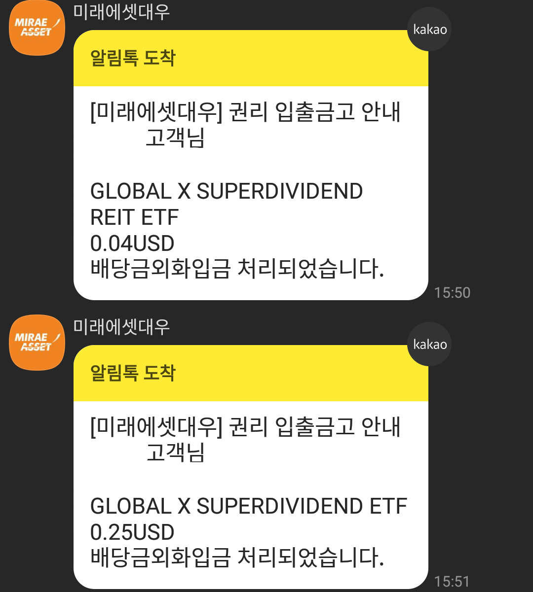 [미국주식] SRET, SDIV 배당 받았어요.