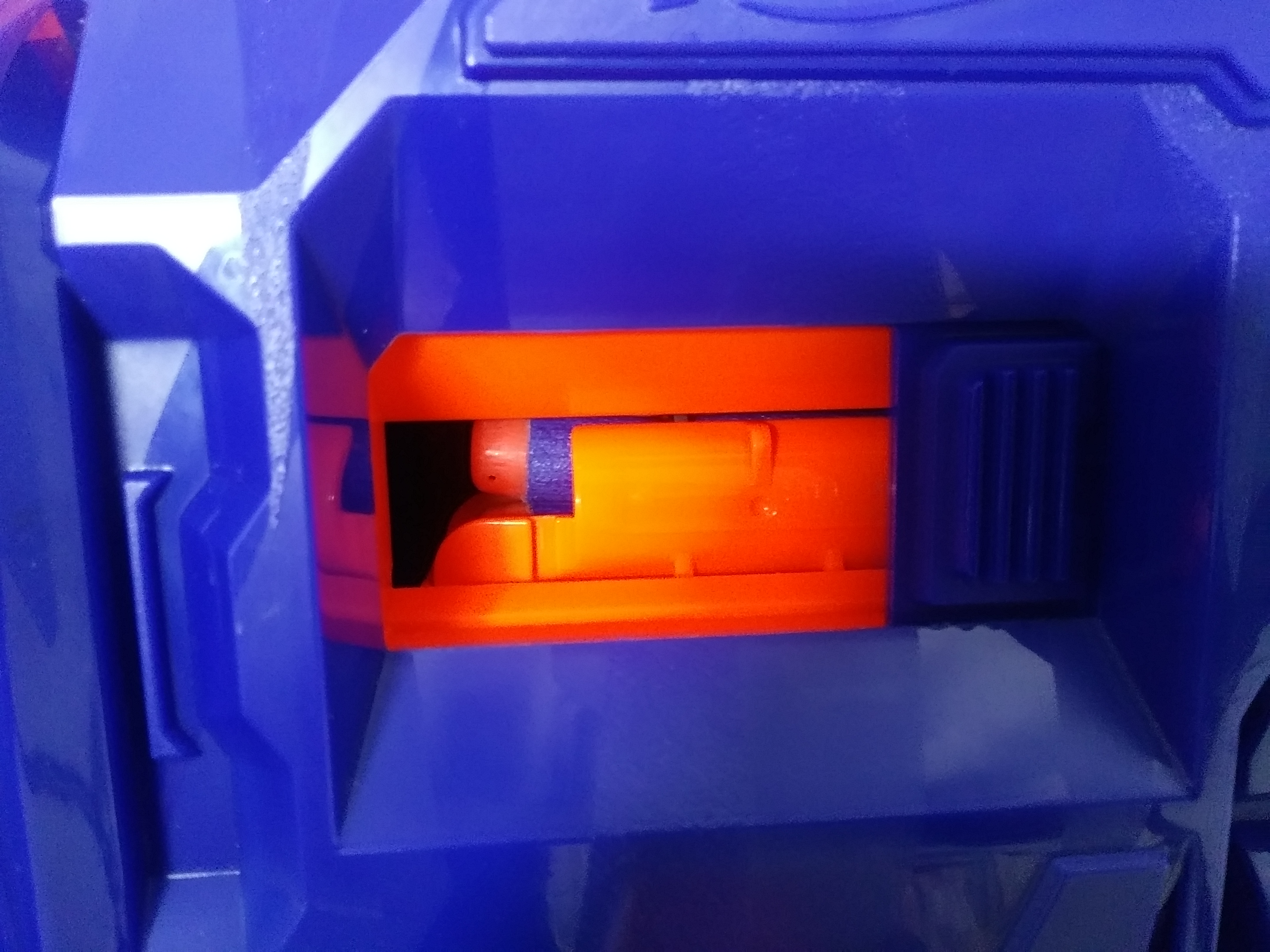 3. 탄피 배출구가 열려 있는 경우: 진짜 총이라면 탄피가 배출되는 구멍도 있습니다. 이 장난감에서는 탄이 걸려 있는지 확인할 수 있는데요. 여기가 열려 있으면 작동 안합니다.