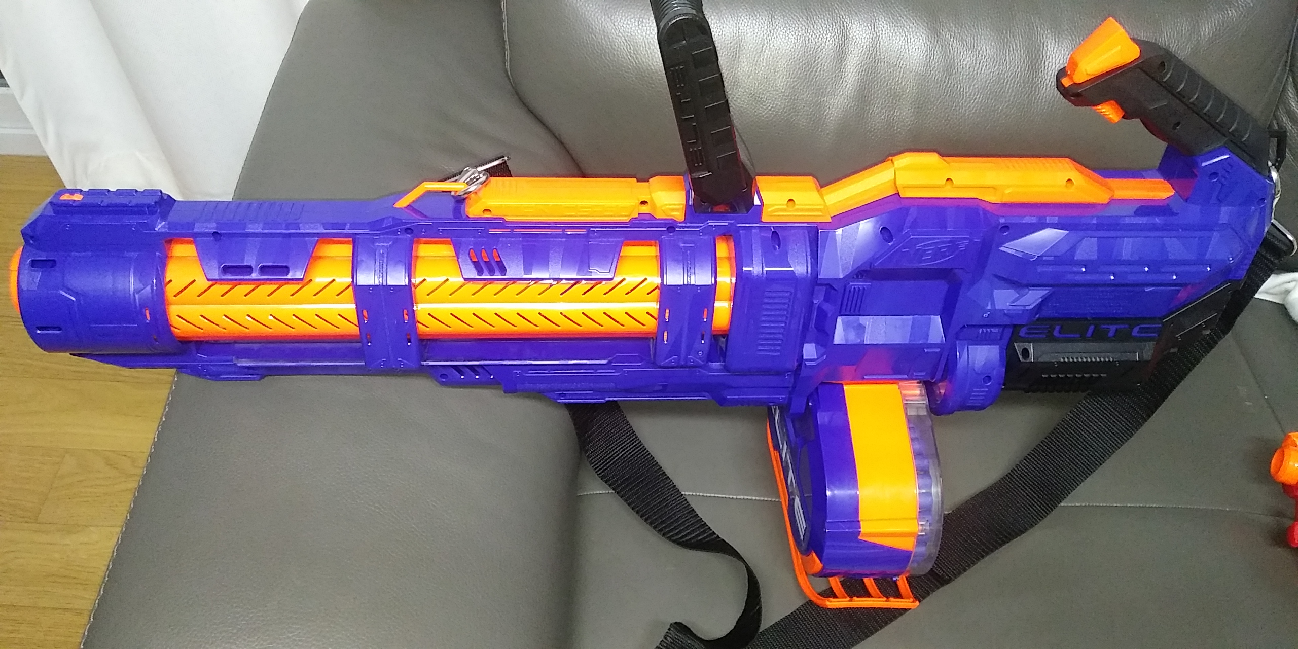 총알 걸림 현상이 자주 일어나 짜증나긴 하는데, 재밌는 장난감입니다. 총알 잃어버릴까봐 집에서만 가지고 놀아요.