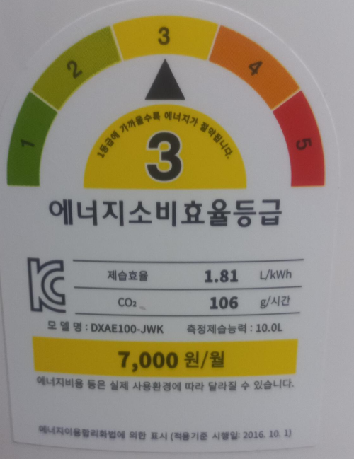 에너지는 3등급입니다. 이정도면 나쁜 편은 아니더라고요. 검색하면서 효율이 이보다 떨어지는 제품도 많이 봤습니다.