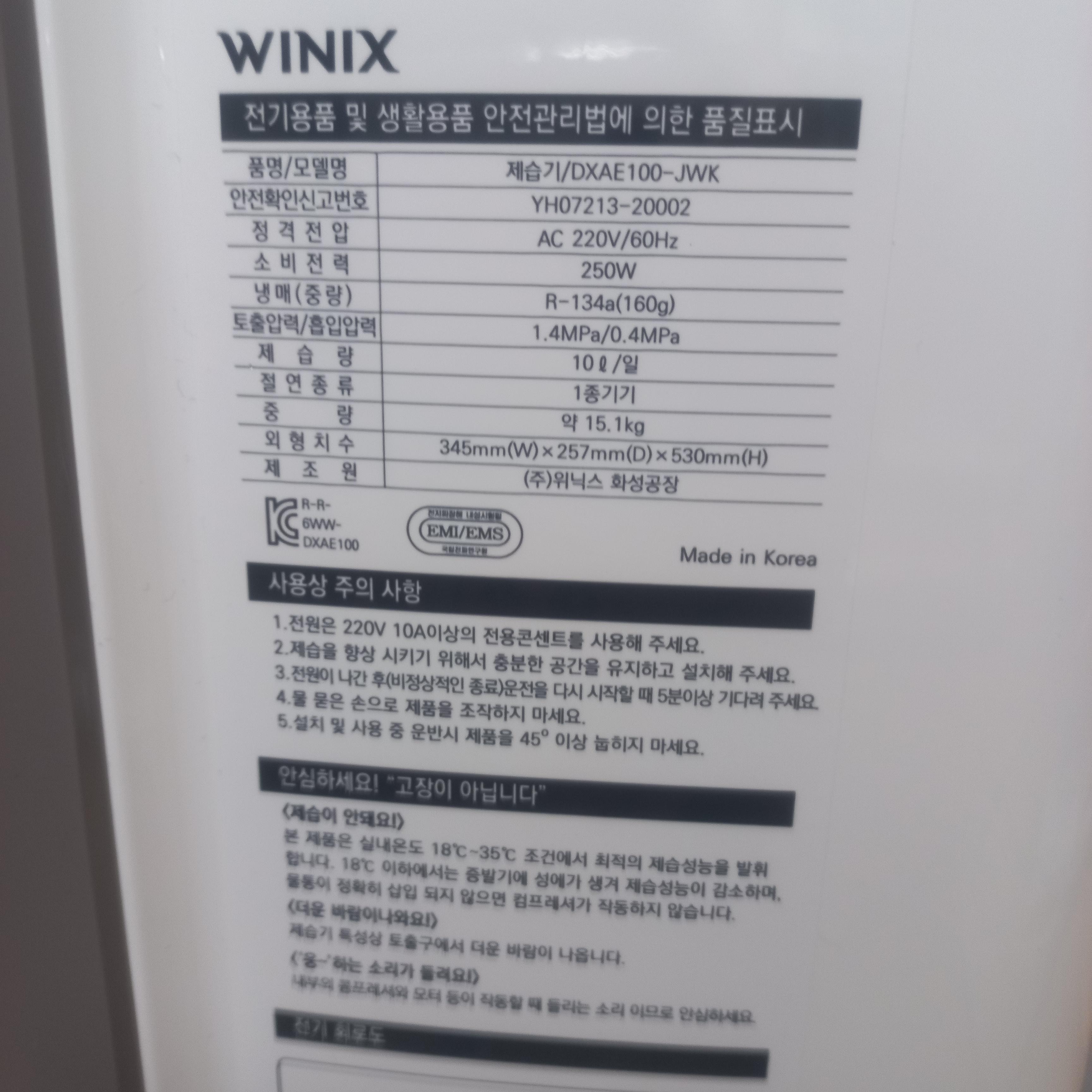 한참을 검색하는데 전부 중국산인 겁니다. 한국산이라도 중국에서 생산한거죠. 거의 포기 상태였는데, 공기청정기가 눈에 들어왔습니다. 위닉스 제품인데 국산입니다. 그래서 위닉스 제습기를 검색했더니.... 와 드디어 찾았습니다. 국산 제습기..... 그중에서도 우리집에 제일 적합해 보이는 dxae100-jwk로 정했습니다.