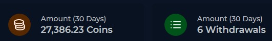 조금 전에 발견했습니다. 보기 좋은 위치인데 왜 그동안 몰랐을까요? 아무튼 지난 30일간 27000코인 이상을 벌었고 6번의 출금을 했네요. 한주에 1~2회 출금했으니 틀린 얘기는 아니겠네요.